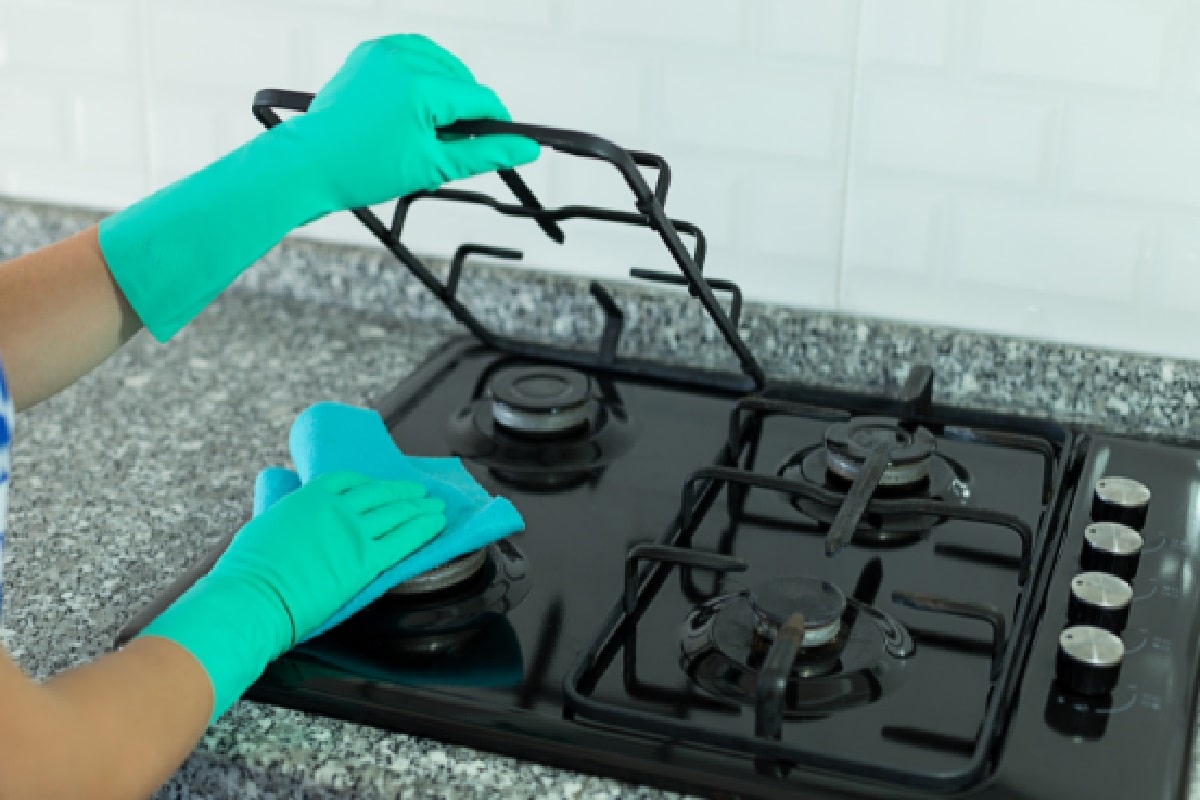 Čistenie roštu plynového sporáka. Metóda s práškom