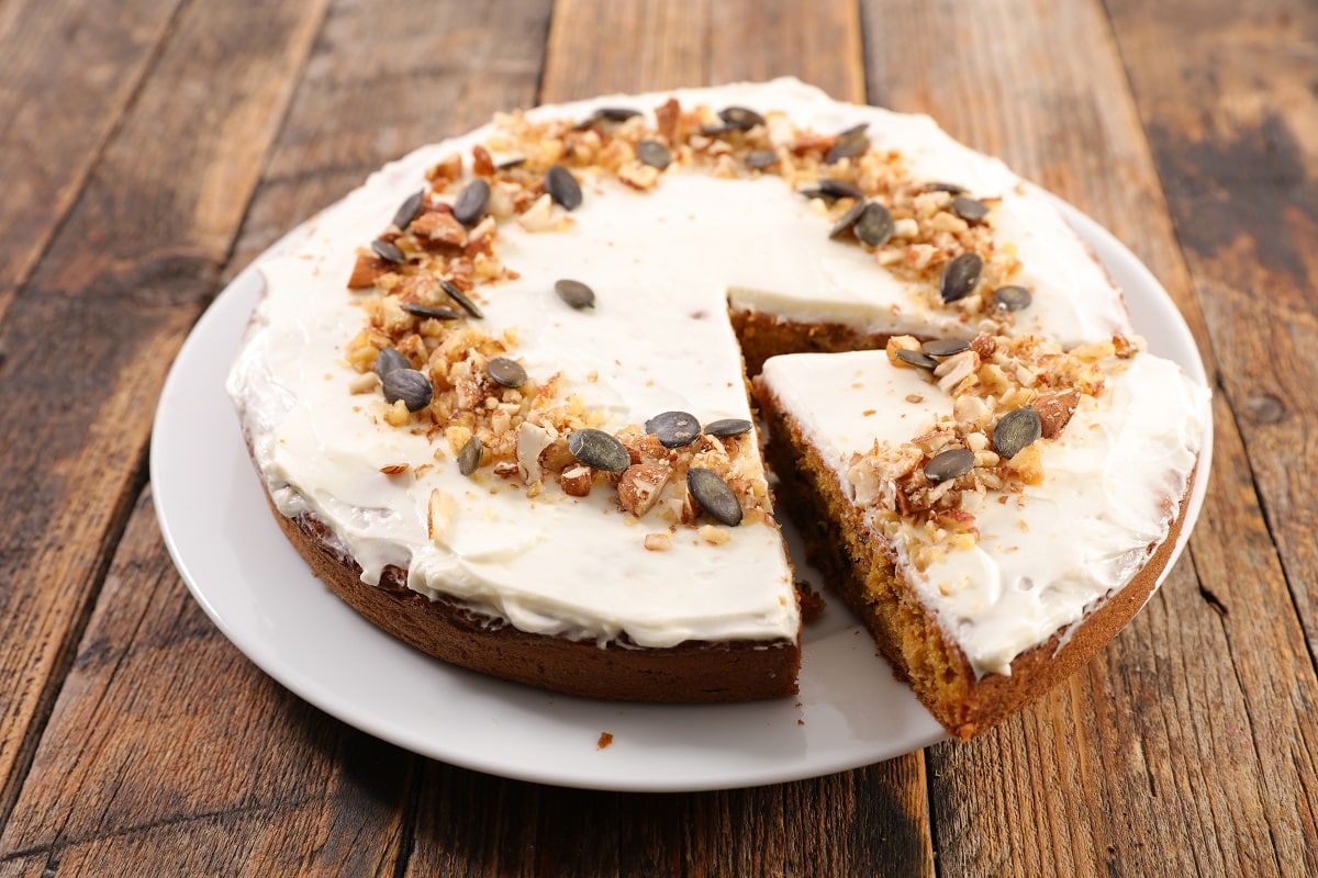 - Koláč nechajte vychladnúť približne 2 hodiny a pred podávaním posypte podľa chuti malým množstvom škorice a cukru alebo ozdobte drvenými orechmi.